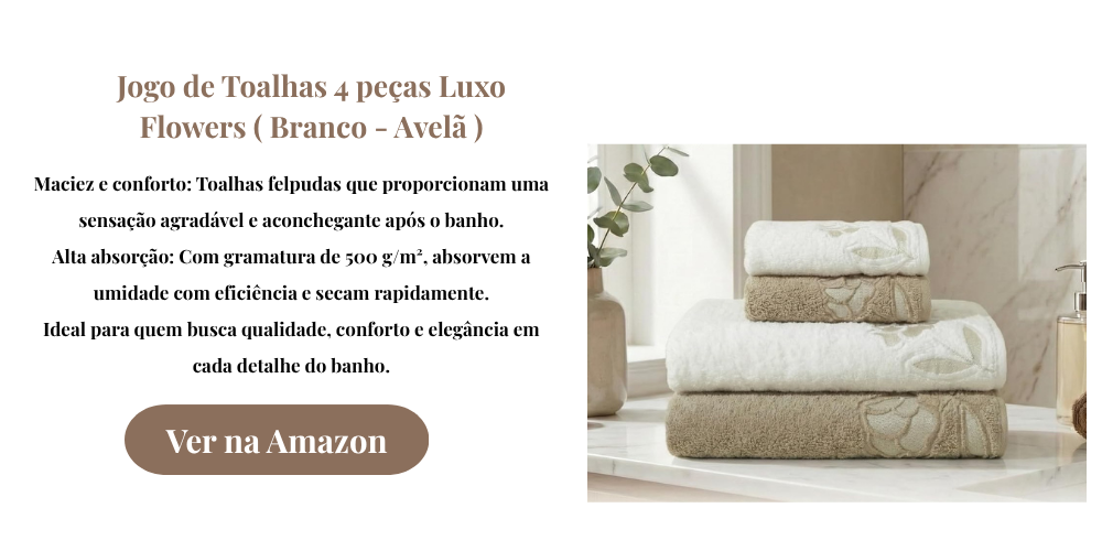 Seguindo esses critérios, fica muito mais fácil escolher toalhas que realmente valem a pena e que vão transformar tanto a estética quanto o conforto do seu banheiro.